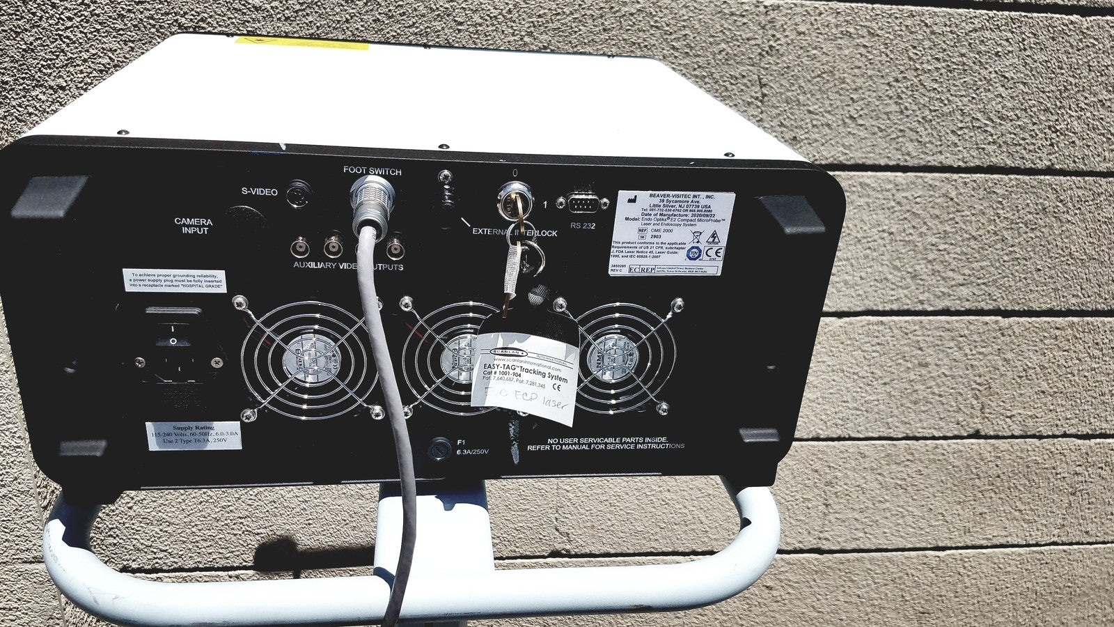The BEAVER-VISITEC Endo Optiks E2 Compact MicroProbe is a professional medical device, specifically a laser and endoscopy system, used in surgical procedures. This product is manufactured to meet rigorous safety and compliance standards, as indicated by its adherence to US 21 CFR regulations, FDA Laser Notices, and IEC standards. The device is a key component for providing visualization and laser delivery in delicate procedures.